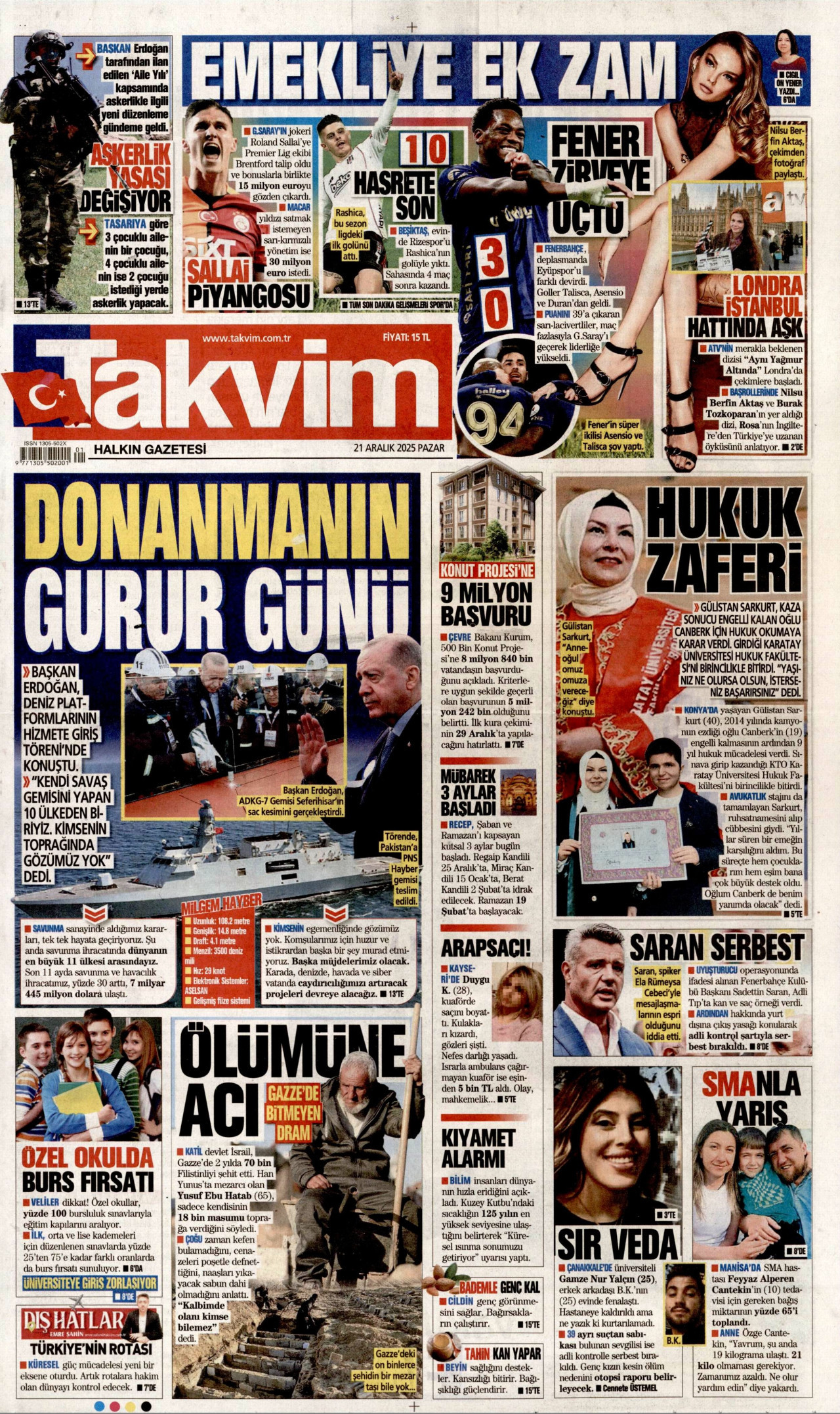 FANATİK Gazetesi 21 Aralık 2025, Pazar Günü Manşeti